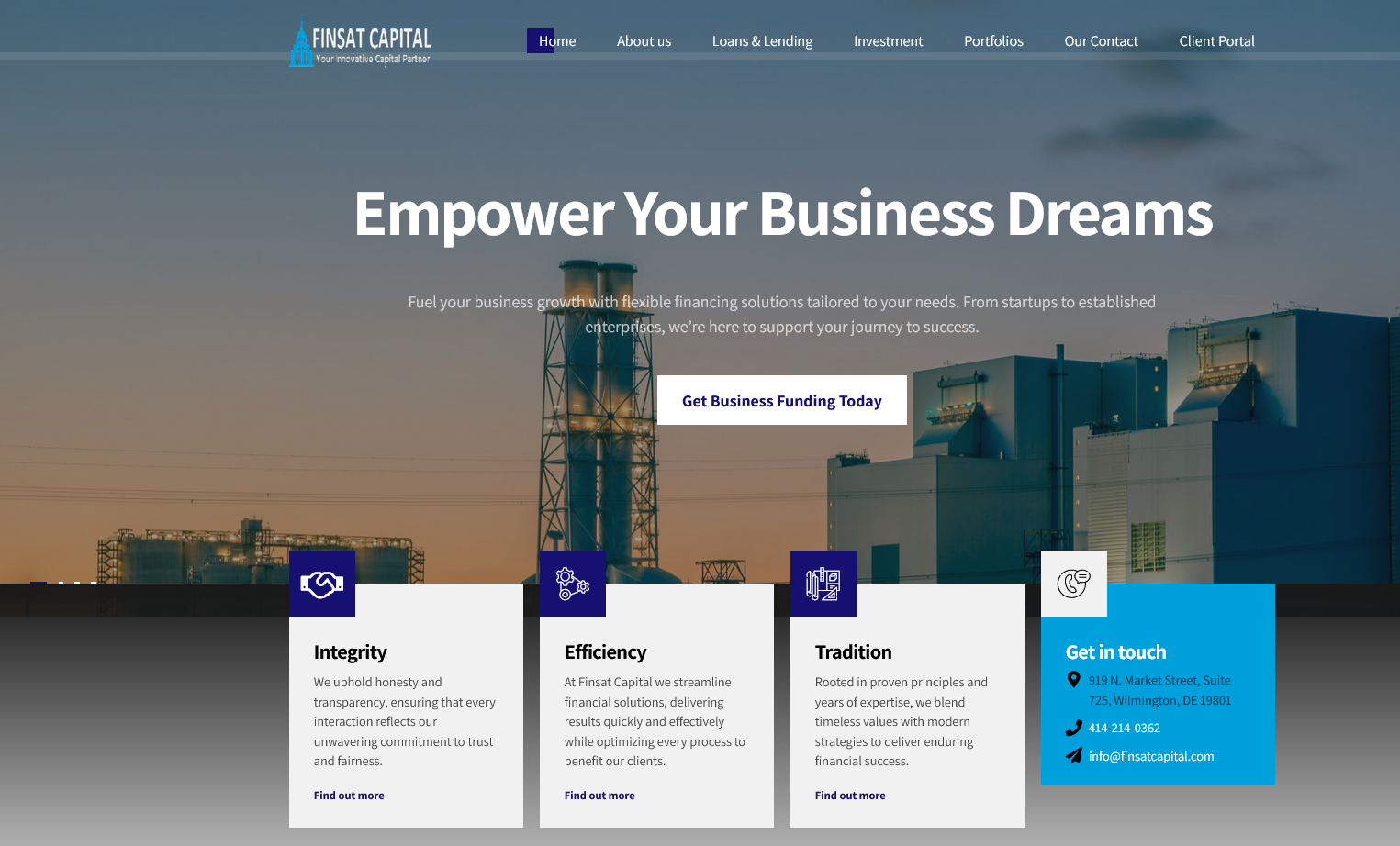 Klares, hochwertiges Layout im US-Stil: Dunkelblau, Weiß und dezente Goldakzente für Seriosität und Vertrauen. Großzügiges Spacing, starke Typografie, Sticky-Header und weiche Übergänge – optimiert auf Conversion.